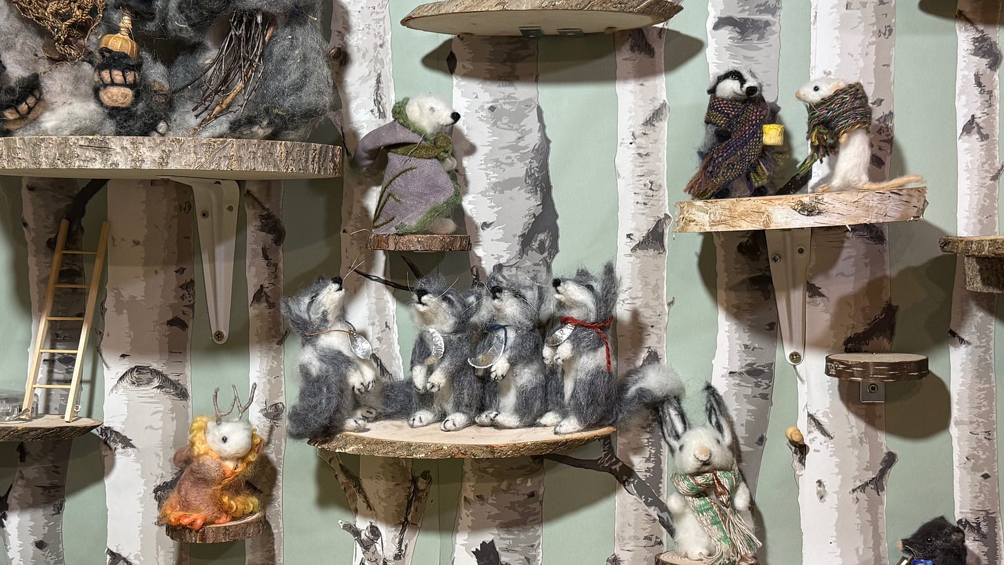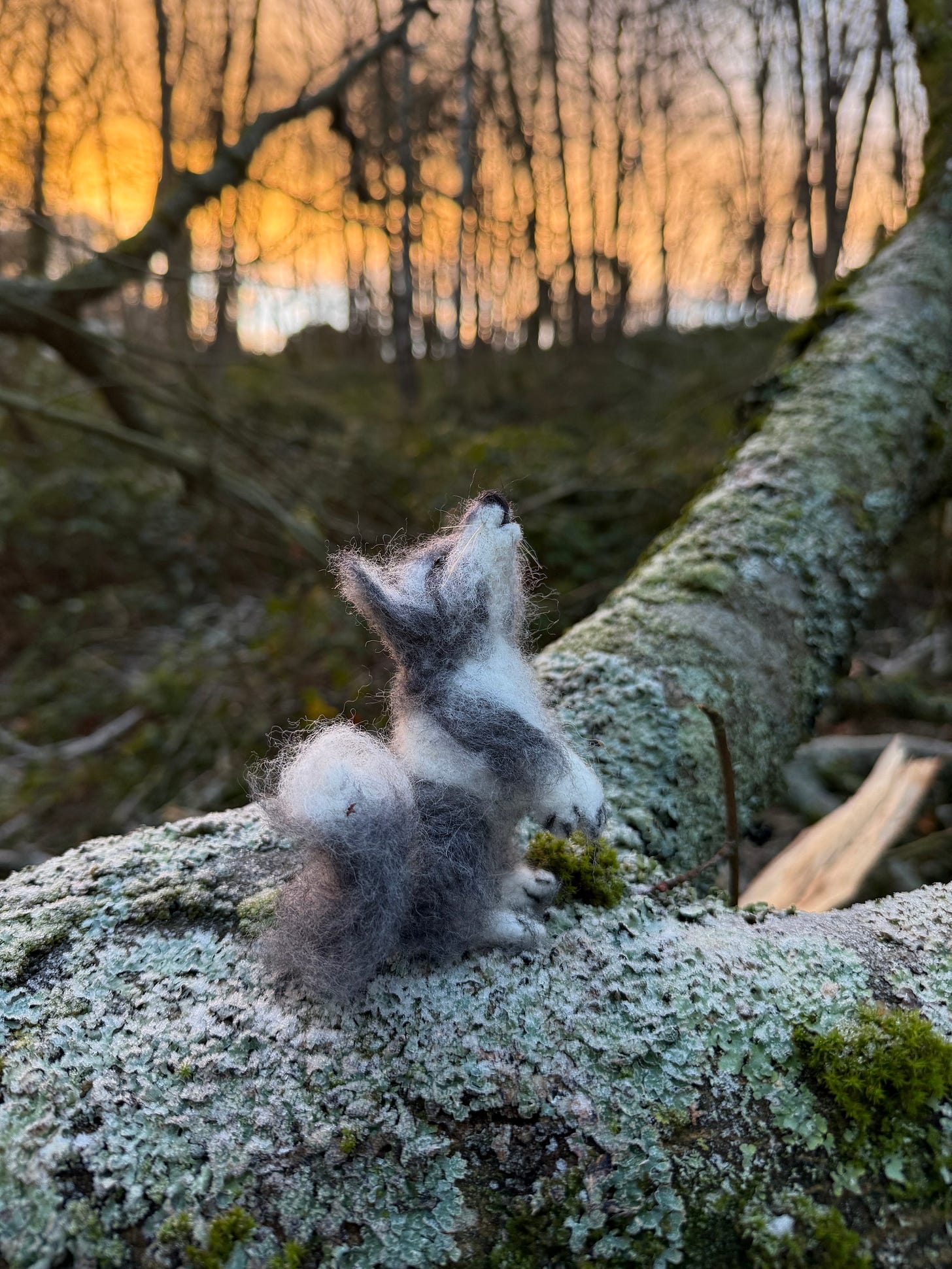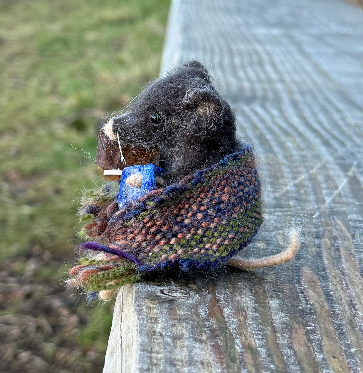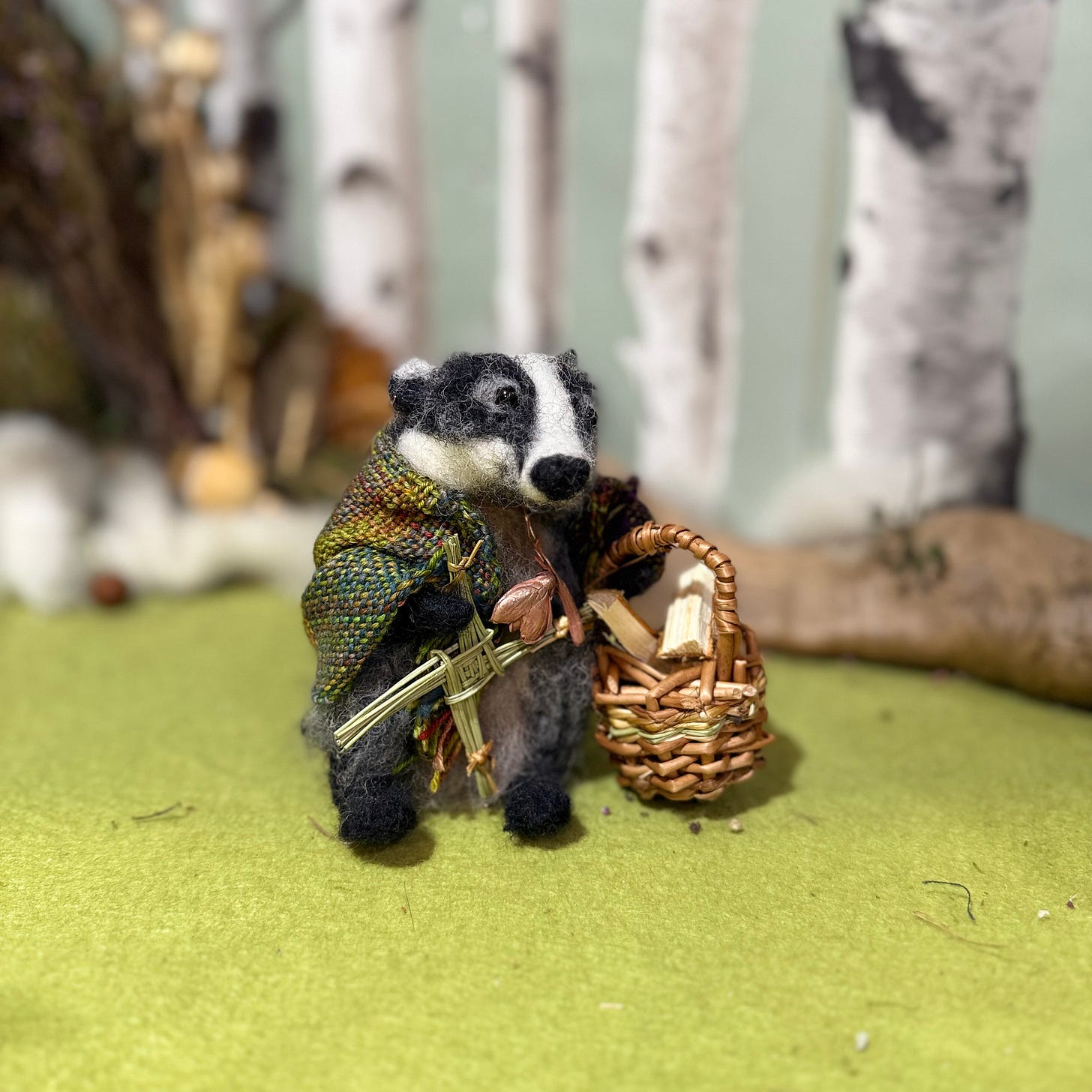 (Oh it is also known as groundhog day in some places. I like the Cailleach story myself. Some tell that at Imbolc the Cailleach goes out to collect firewood. If she wishes winter to stay longer, she makes the day sunny and bright so she can gather plenty more firewood, but if she oversleeps and is ready for Brigid and spring to return then the day is cloudy and grey. I made a Cailleach badger for the collection with her Brigid cross and snowdrop and basket of firewood.