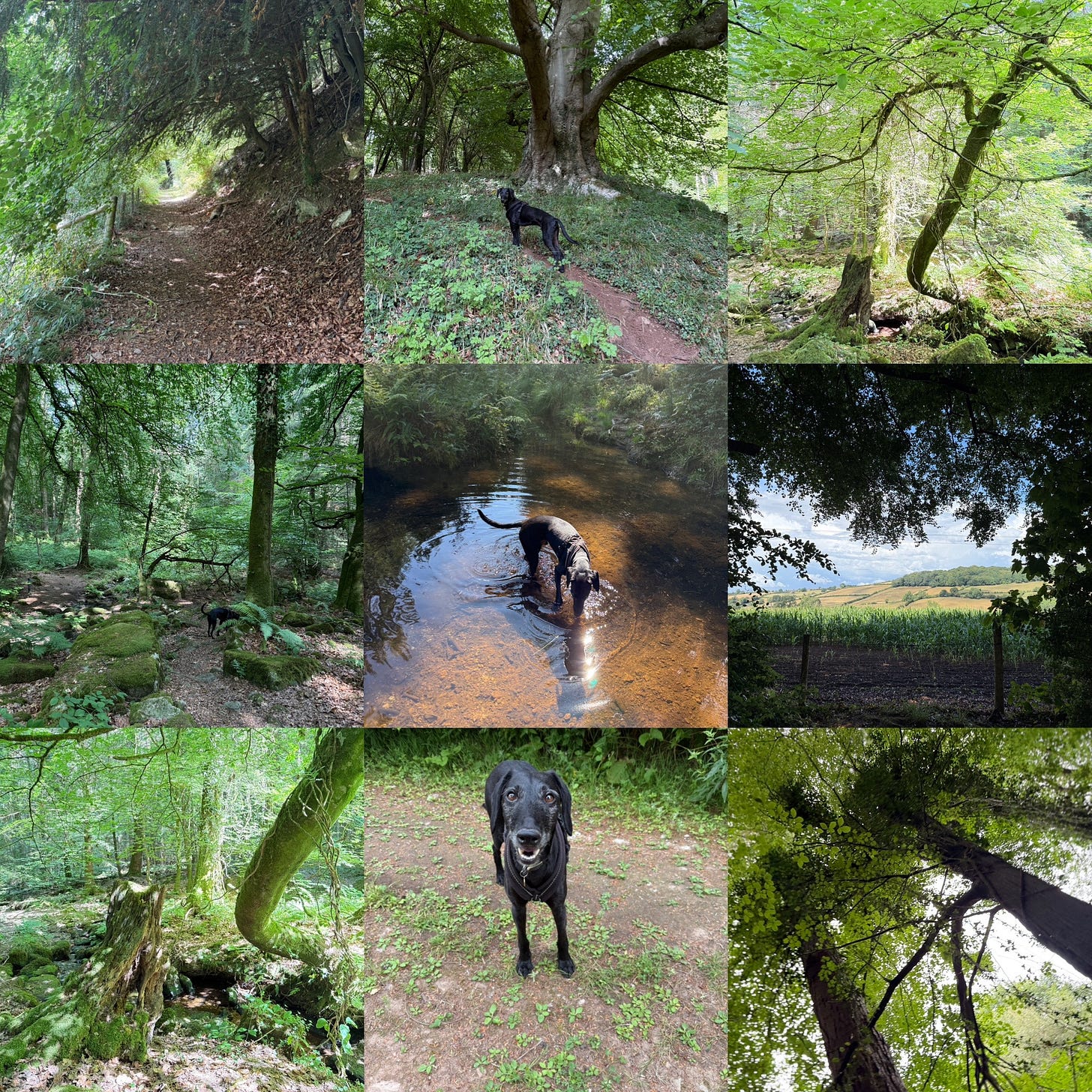 Lupin and I have been walking the woods as usual. It has been so hot here with several heatwaves and it has meant short walks and hiding in shady woods a lot. The river is too polluted to swim in this year which adds to the itchy feet! I am longing for long cool walks high up in the hills with a cool breeze.